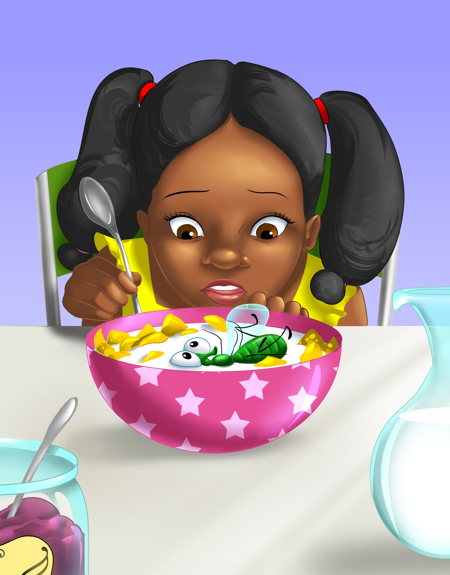 Since my mother had a “green thumb,” we always had a garden full of different types of vegetables, As a child, I would watch her plant seeds and till the ground. However, I also noticed all the bugs that would occasionally visit the garden while she tended to it, which helped developed my “slight” fear of bugs. Because of this, I instructed the illustrator to create a lush garden with a wooden arch that reads, “Mama’s Garden.” Additionally, I also told the illustrator to add carved birds to the top of the arch in memory of my mother, whose nickname was “Bird.”